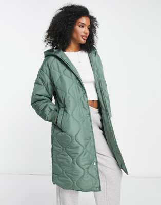 Vila – Mantel in Grün mit Kapuze und Zwiebelsteppmuster | ASOS
