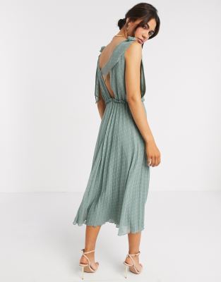 ASOS DESIGN tie shoulder pleated midi