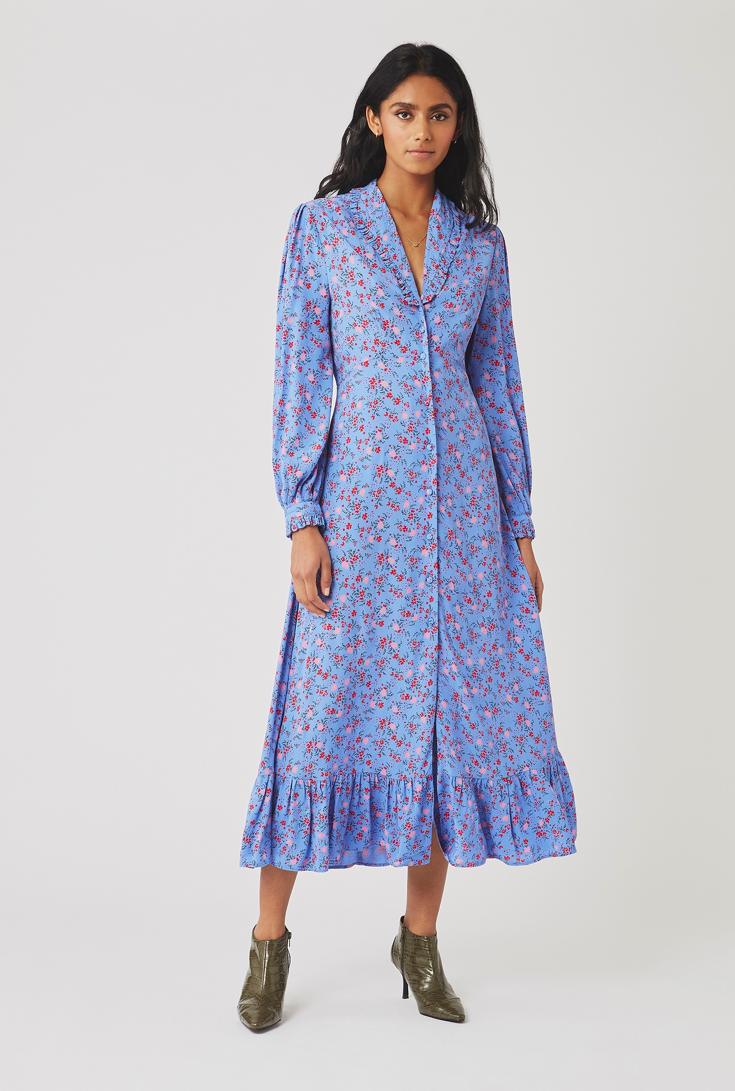 Ghost Anouk Blue Floral Midi Dress