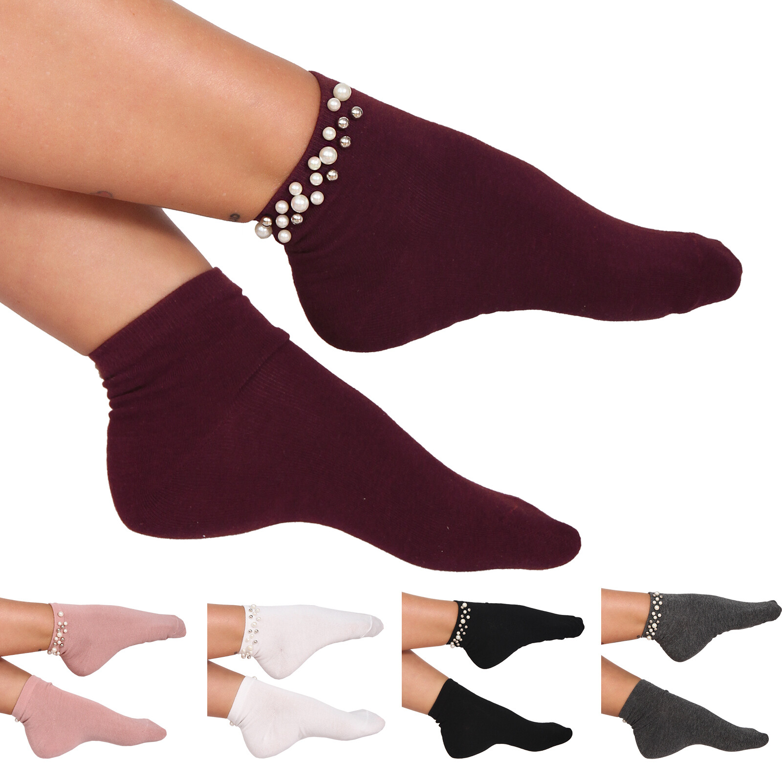 Trendige Damen Perlen Kurze Sneaker Socken Strass Dünn Knöchel Silber Mädchen | eBay