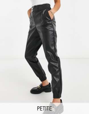 Black faux leather slim leg joggers