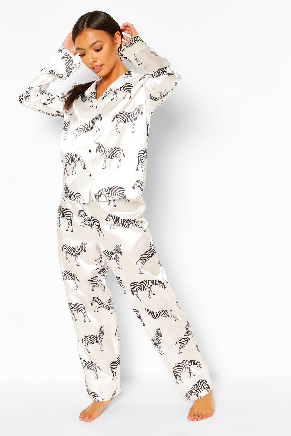 Zebra Print Satin PJ Short Set | boohoo