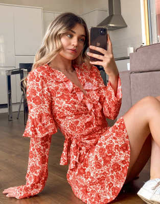 Topshop wrap mini dress in red floral