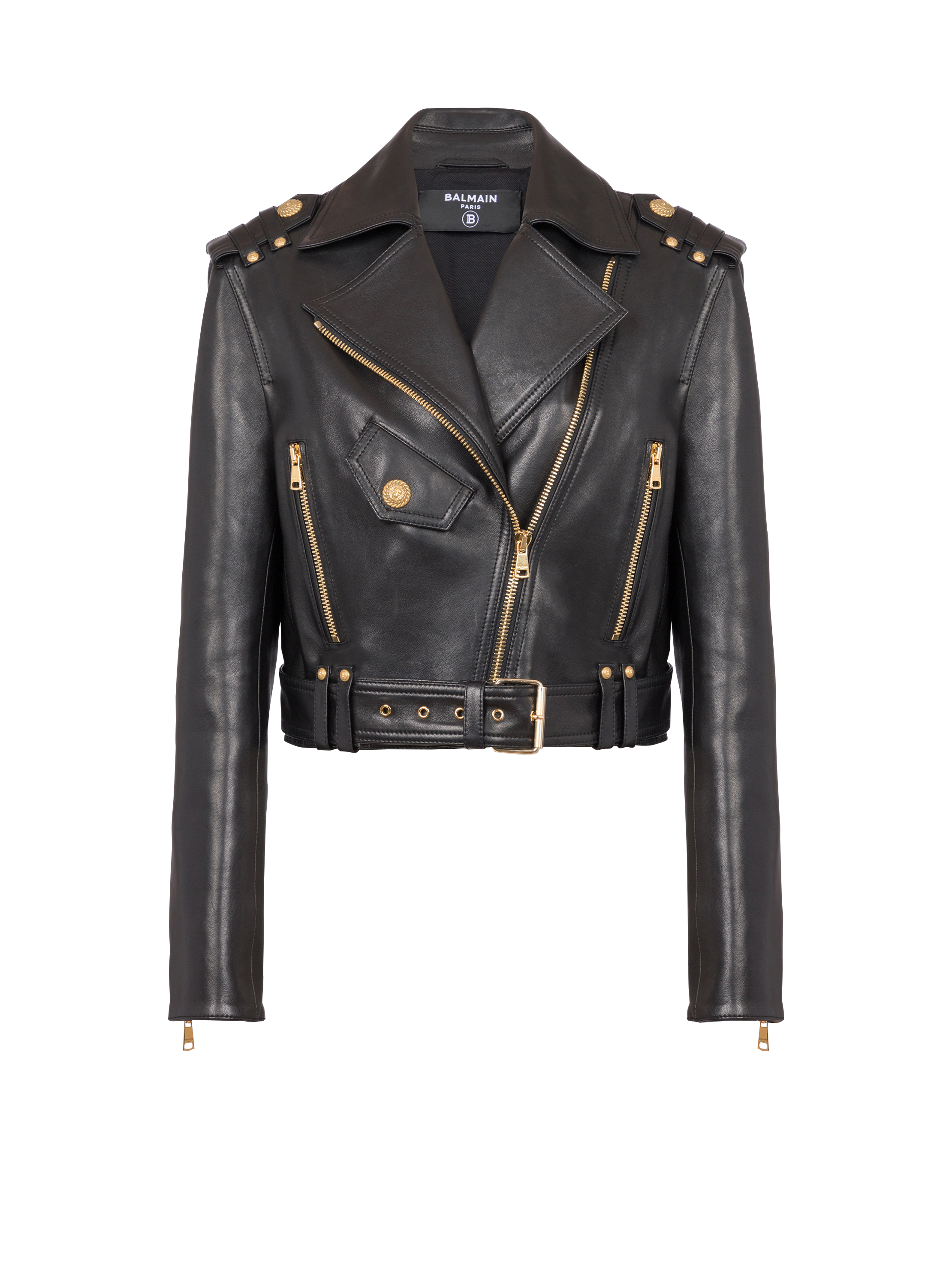 Zipped leather biker jacket black - Women | BALMAIN
